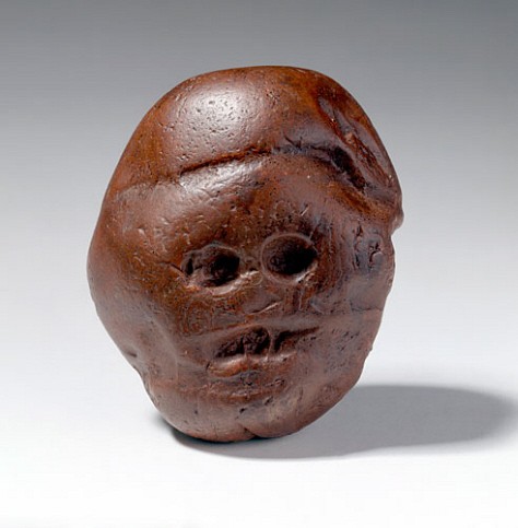 Several weeks ago I stumbled upon an amusing article on a museum displaying pebbles and rocks resembling human faces, situated in Chichibu, Japan. The stones are called jinmenseki (珍石) and one should be able to recognise human faces in their naturally occurring dents and holes. The founder of the museum, Shozo Hayama, spent some 50 years collecting these specimens, the only criterion being that human hand did not interfere with the work of nature. There are some 1700 rocks on display, carefully arranged in museum vitrines and sometimes labelled with suggestive interpretations: Elvis Presley, Gorbachev or Donkey Kong. More on the museum can be found in articles listed below.