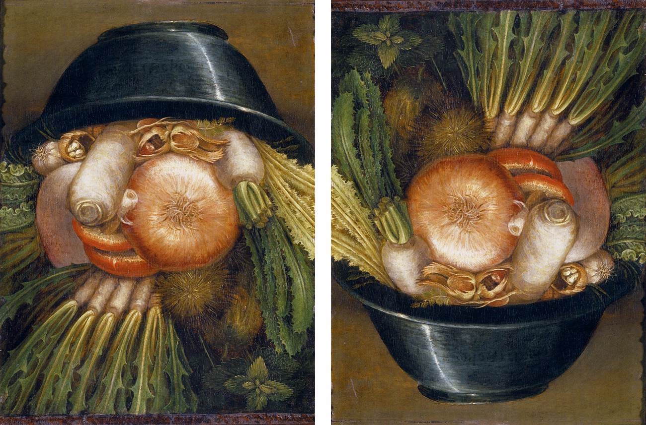 Giuseppe Arcimboldo 1587-90, The Vegetable Bowl / The Gardener, a “reversible portrait” |